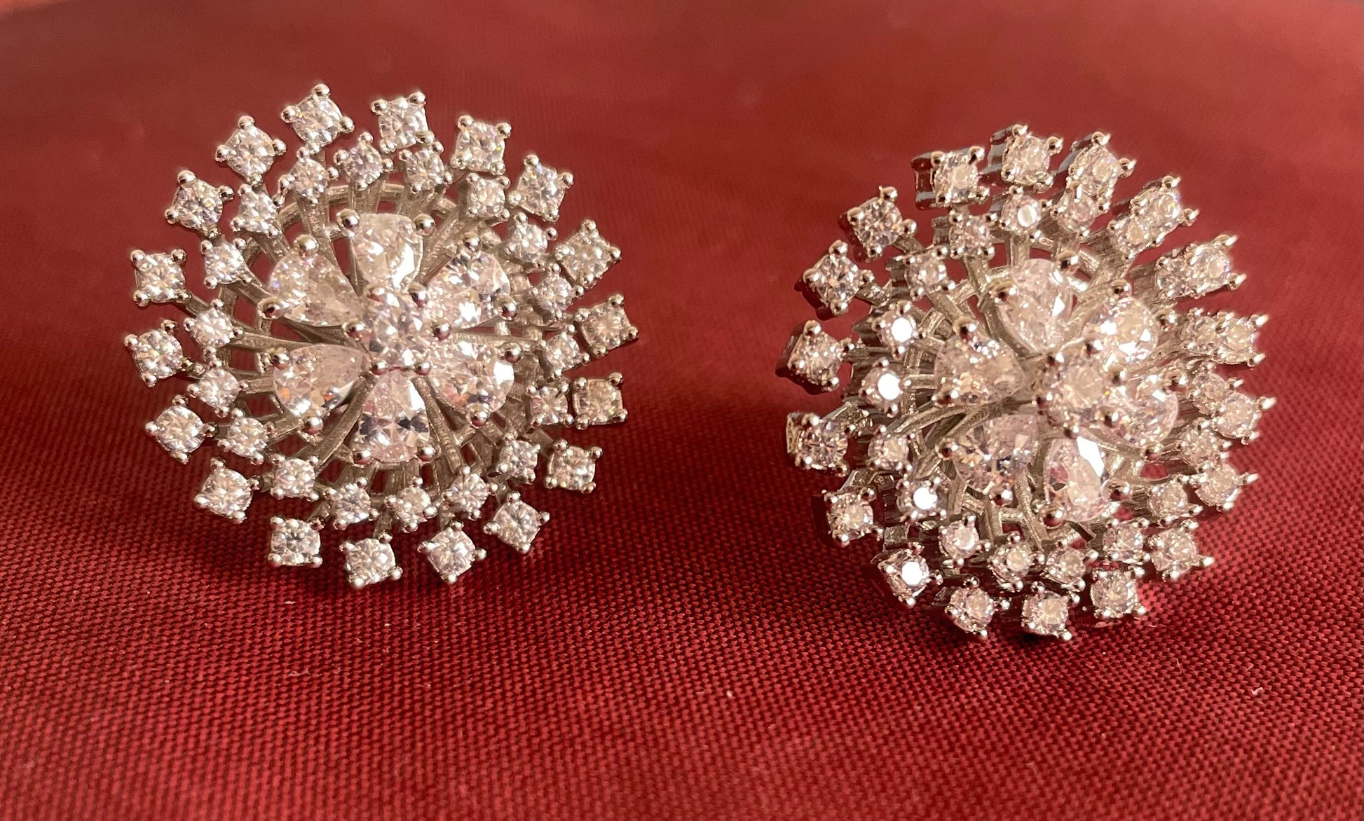 A radiant symphony of sparkle, the Celestial Bloom Studs capture the elegance of a blossoming flower kissed by star light. These studs are perfect blend of grace and brilliance. whether paired with festive ensembles or evening classics, they promise to be your statement of timeless charm.