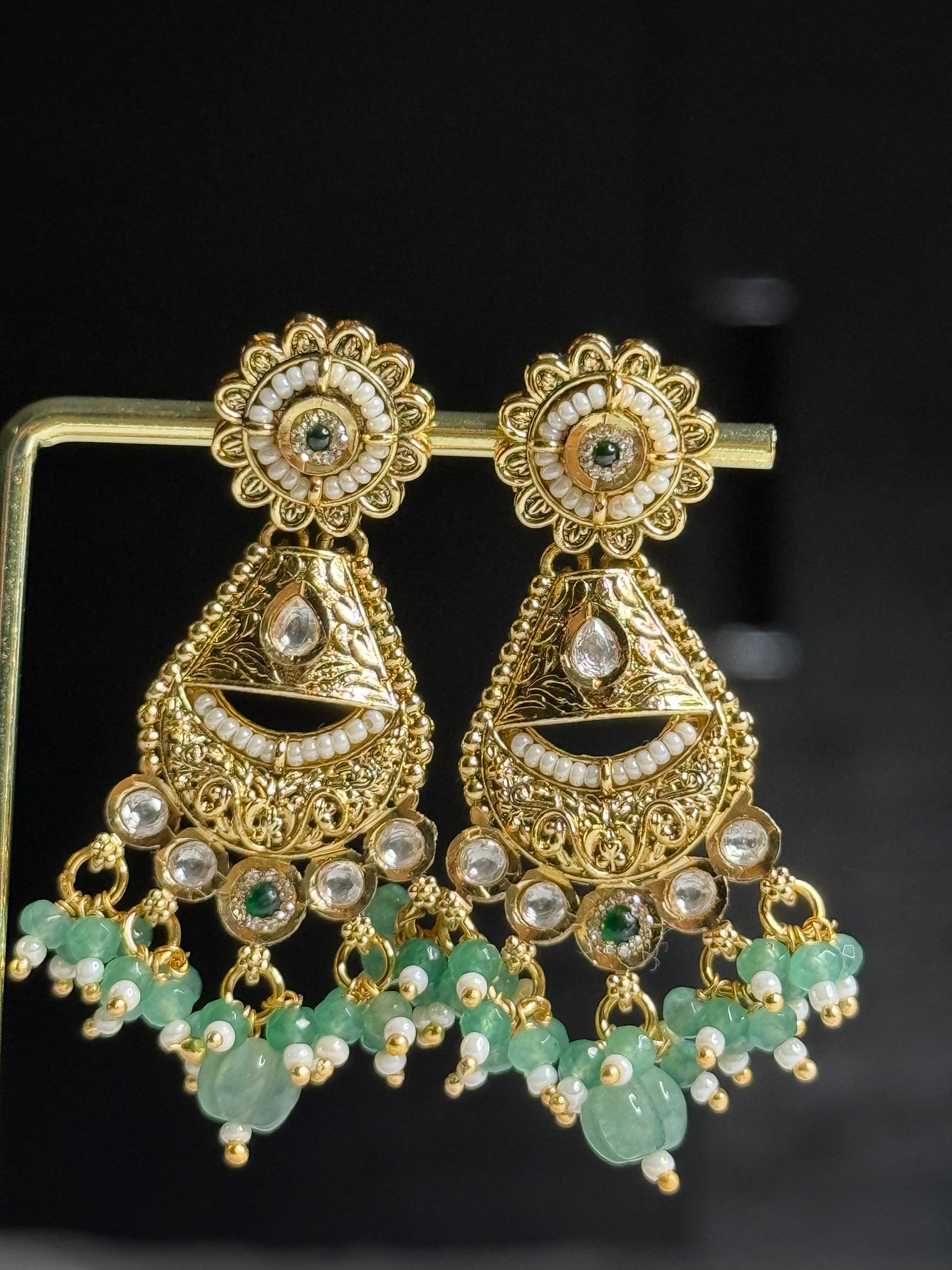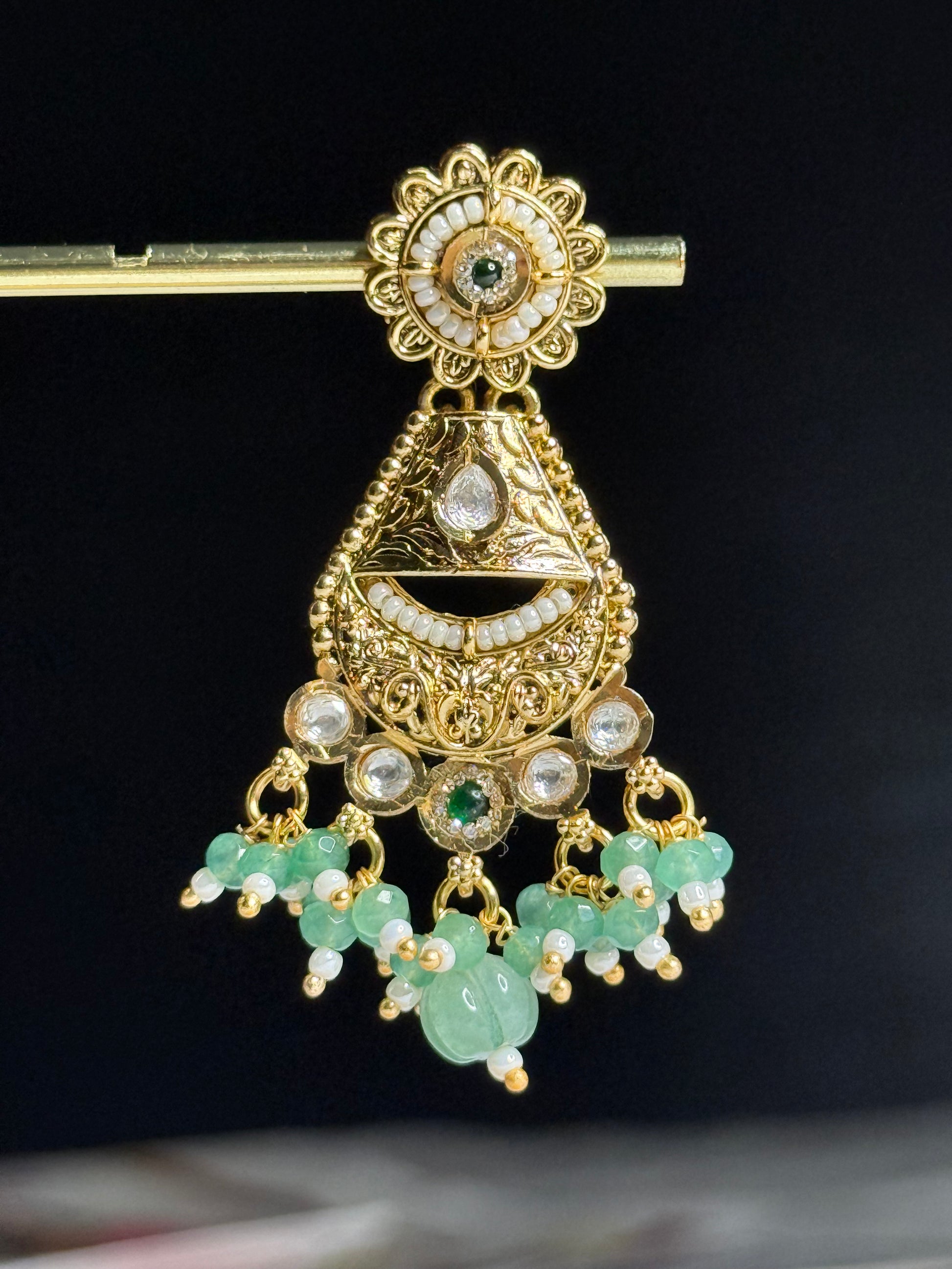 Gracefully crafted in antique gold, Meher Baalis shimmer with kundan accents and pearl white bead tassels. A perfect harmony of tradition and elegance — made for moments that deserve to be remembered.