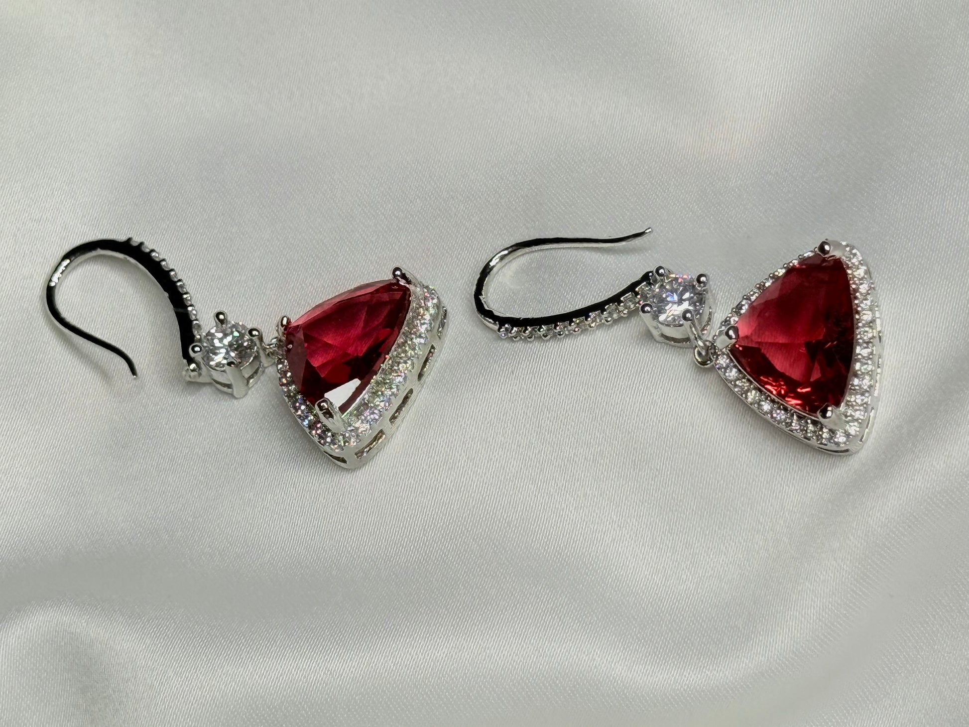 Chic and modern , these silver tone drop earrings feature bold grey triangular stones framed in shimmering crystals. Lightweight and elegant , they add a touch of drama to any evening look.