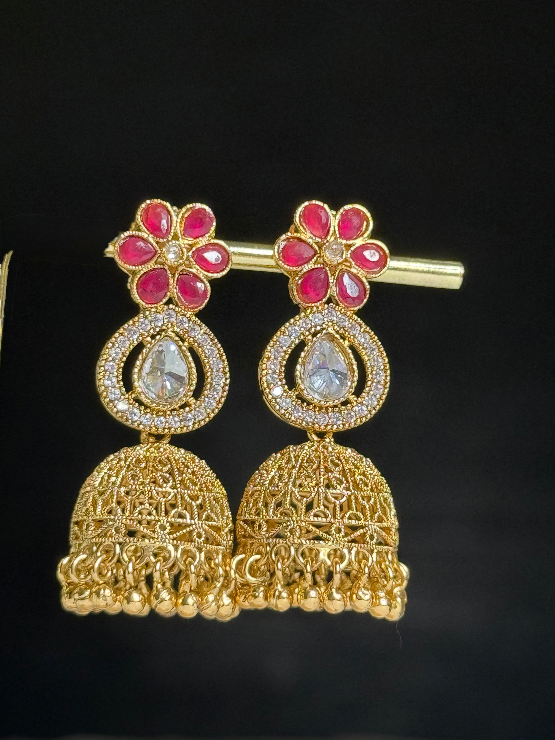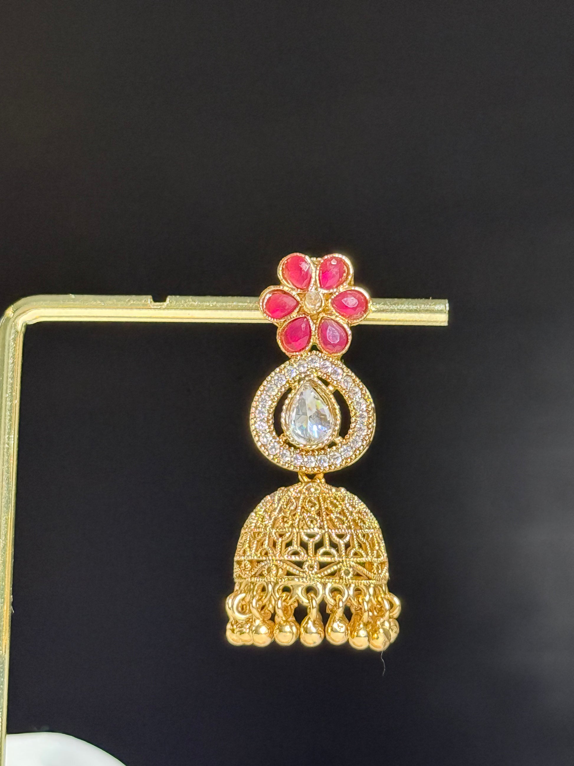 Radiant Ruby floral Jhumkas