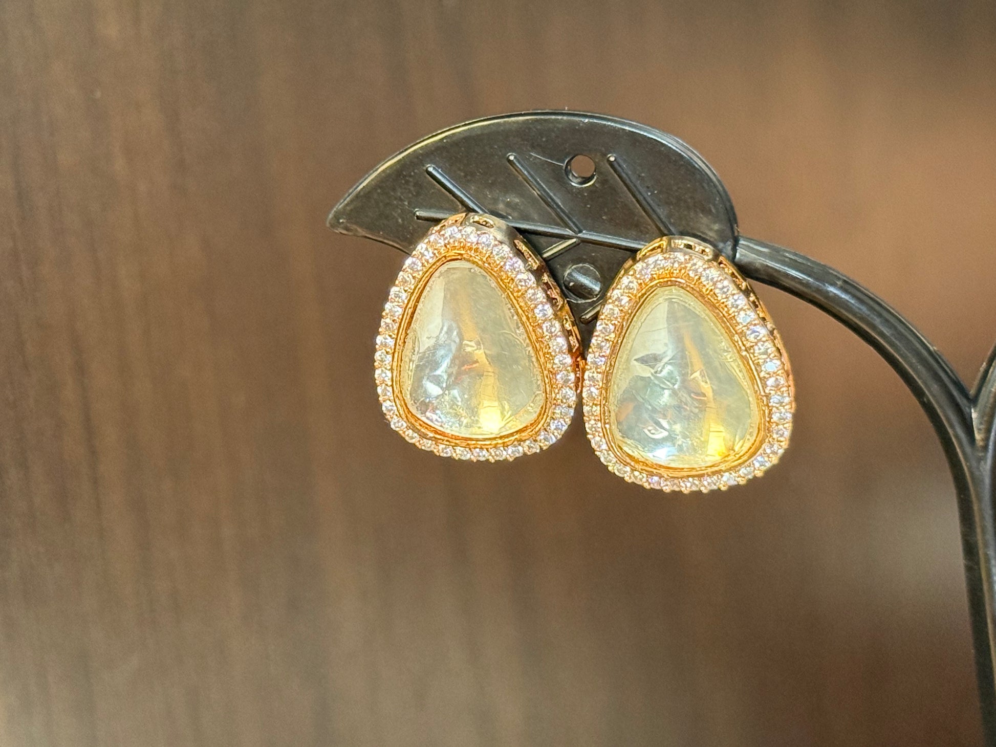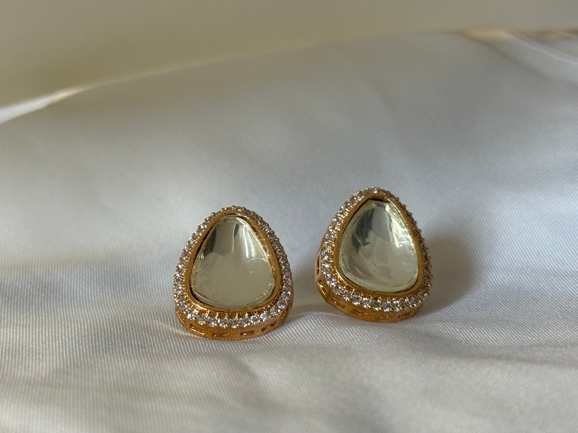 Sheen earrings feature a luminous mirror-like centerpiece bordered with delicate crystals. Perfect to elevate your evening look with understated brilliance.